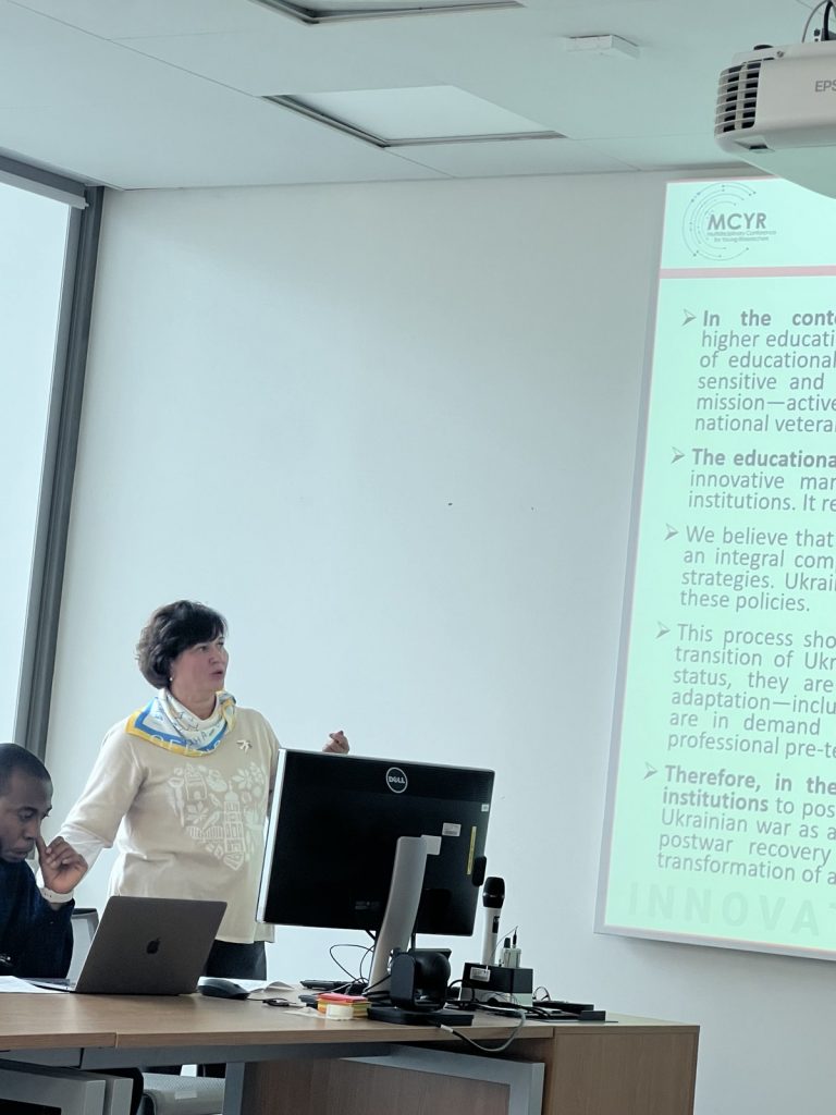Alla Havryliuk delivered the presentation “Educational Reintegration of Male and Female Veterans of the Russian–Ukrainian War in the Context of Socio-Humanitarian Transformations of Universities”, presenting research results on the educational reintegration of veterans, the role of universities in supporting military personnel, and the socio-humanitarian transformations of higher education in the post-war context.