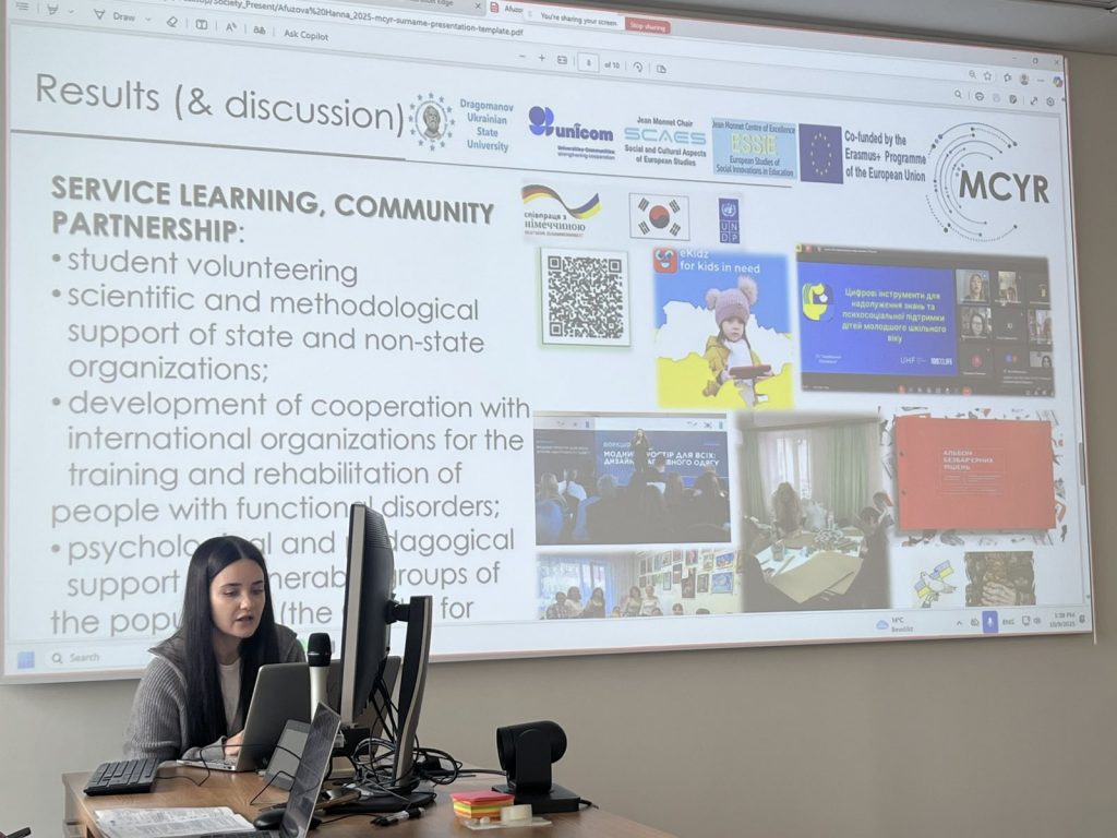 Bohdan Khmelnytsky Melitopol State Pedagogical University was represented by Nadiia Akulova with the presentation “Illustrated Knowledge: The University’s Role in Shaping Ecological Thinking through Children’s Picturebooks”. Her contribution demonstrated how university experts can influence the development of children’s environmental awareness through visual educational materials. The research highlighted the potential of interdisciplinary projects that combine environmental education, pedagogy, and cultural studies, as well as the university’s role in producing knowledge aimed at public benefit beyond the academic environment.